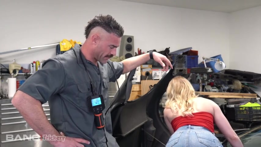 Cute Kenzie Madison Let Mechanic Pound Her In The Garage