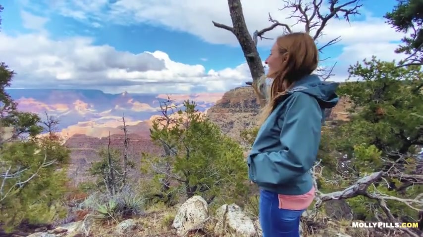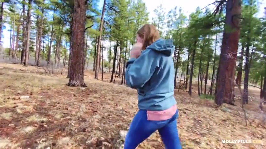 Amateur slut with natural tits gets creampied outdoors