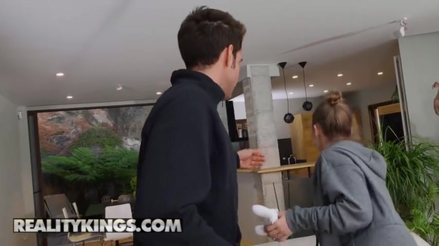 Sexy brunette Misha Maver gives a blowjob and fucks doggystyle