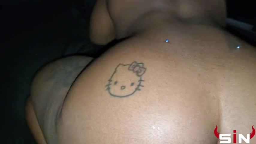 Ebony Katt Garcia seducing a white dude with her big natural tits