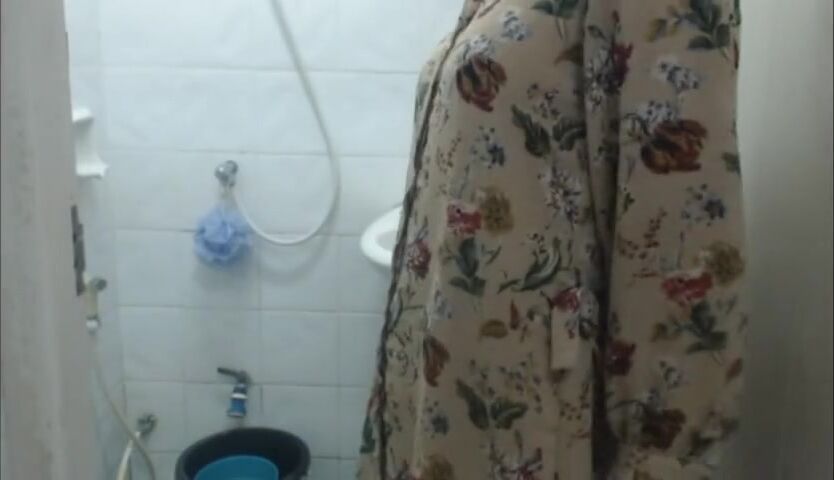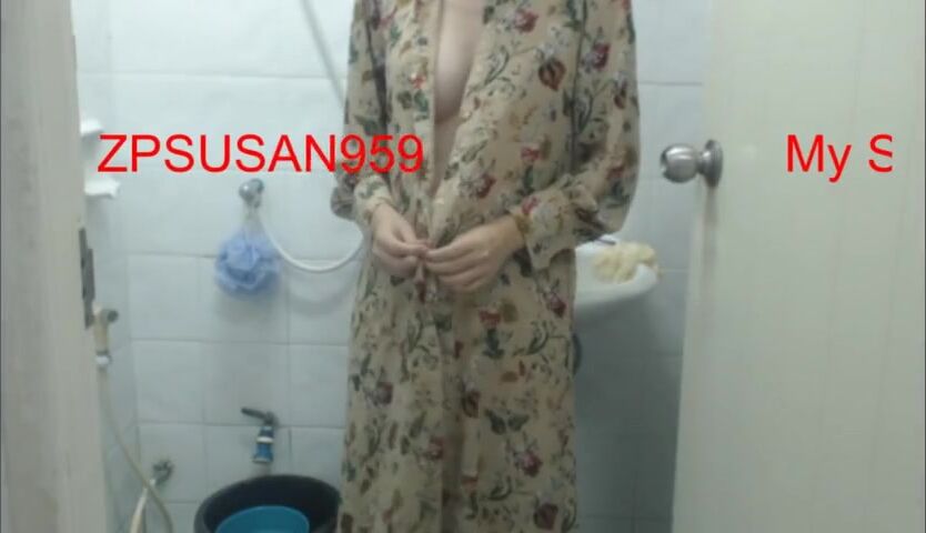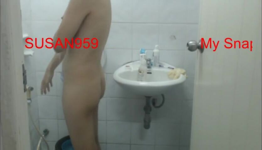 Naughty amateur babysitter filmed in bathroom washing her tits and furry pussy