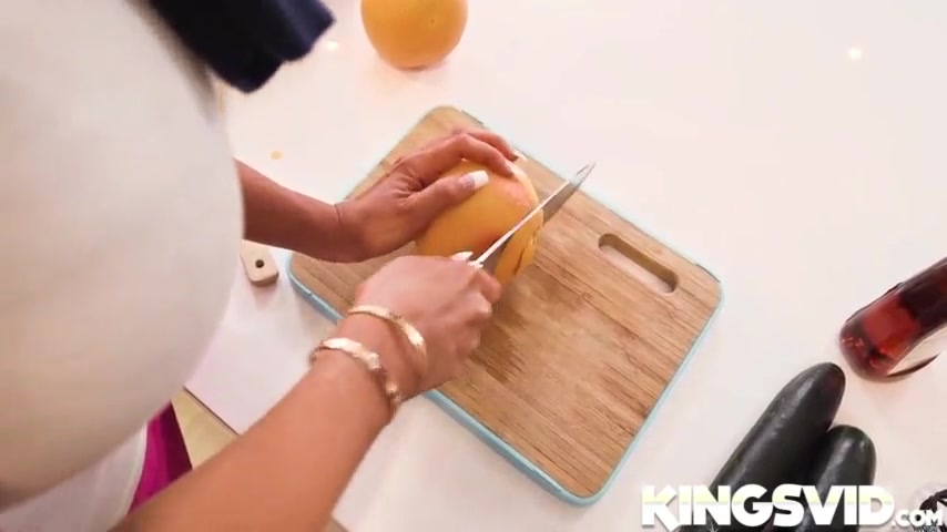 Maid with big boobs Ava Addams spreads legs for rough railing