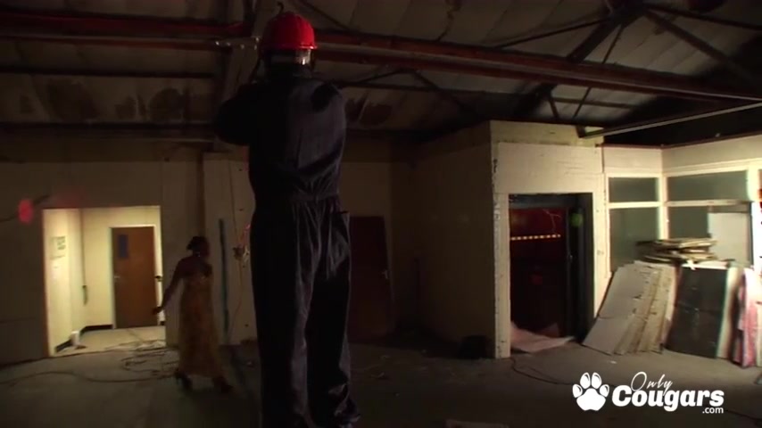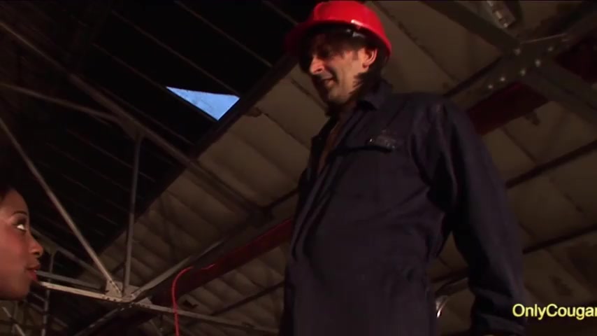 Ebony mature seduces a white guy with her phat bottom and takes hard and deep pussy pounding