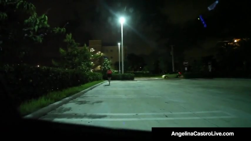 Stunning lady with massive juggs Angelina Castro sucks cock