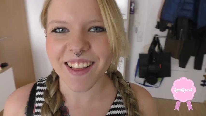 Fantastic teen with blue eyes Taylor Blake kneels to suck dick