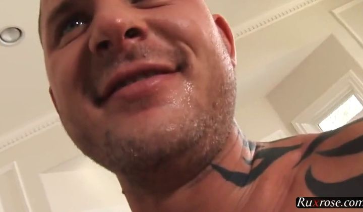 Inked dude pulls this thick gal's panties down and decides to lick her ass and her pussy