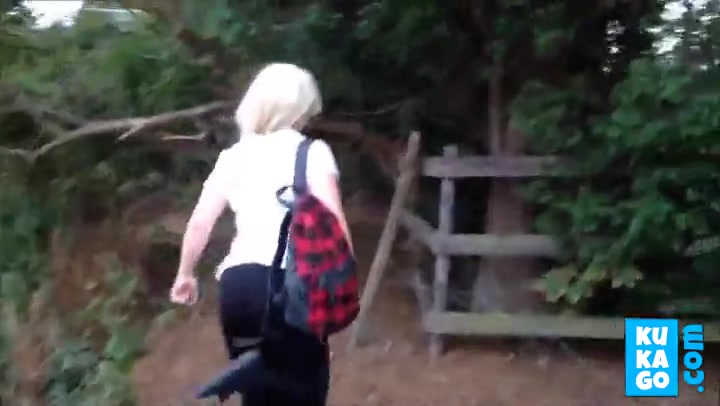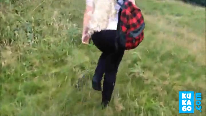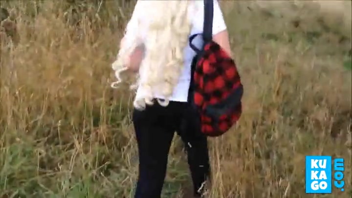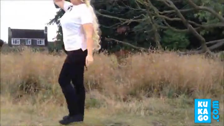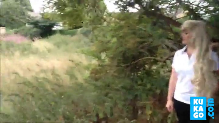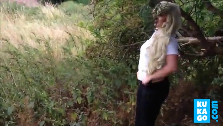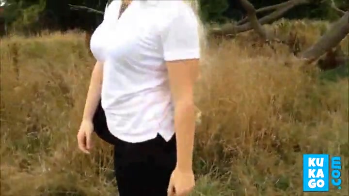 Sultry blonde fat ass babe stripping her clothes off in the park and touching her titties