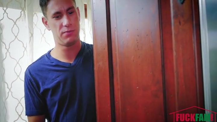 Mom with big tits giving son a blowjob and cock riding for a Christmas