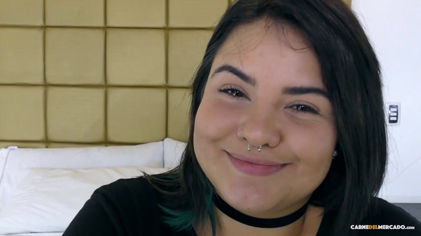 Latina babe gives a sloppy blowjob and swallows cum