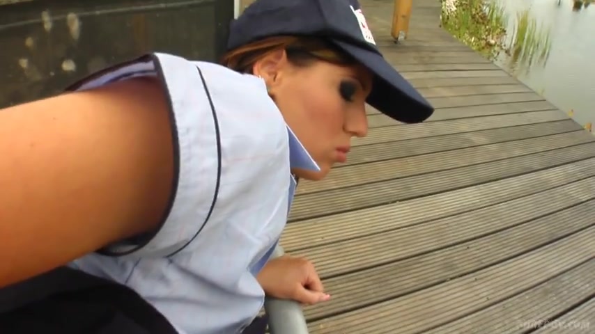 Young stewardess with mask worships her huge tits while getting slammed