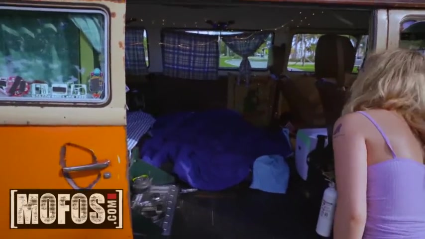 Blonde schoolgirl Oliver Flynn clapping her big sexy booty over a dick in a van