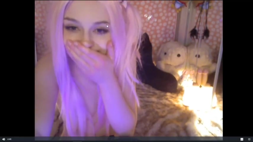 Pink haired amateur teen with small tits shows her masturbation skills on webcam