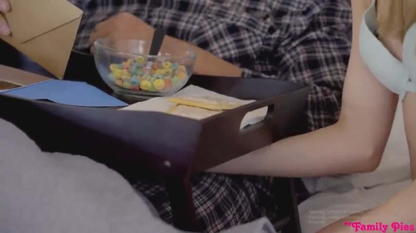 Blonde stepdaughter teasing and seducing her dad to suck his rod