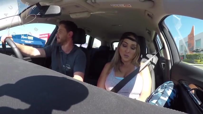 Busty MILF Aubrey Black seduces uber driver and rides him in a car
