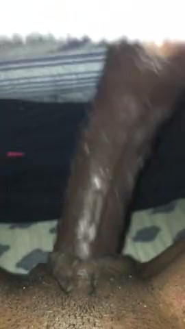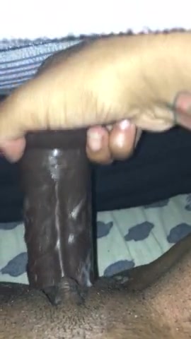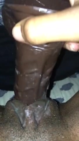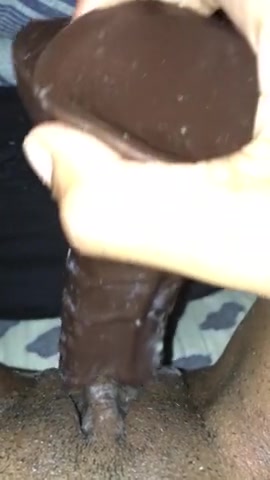 Amateur ebony toying her pussy with big black dildo and squirts hard