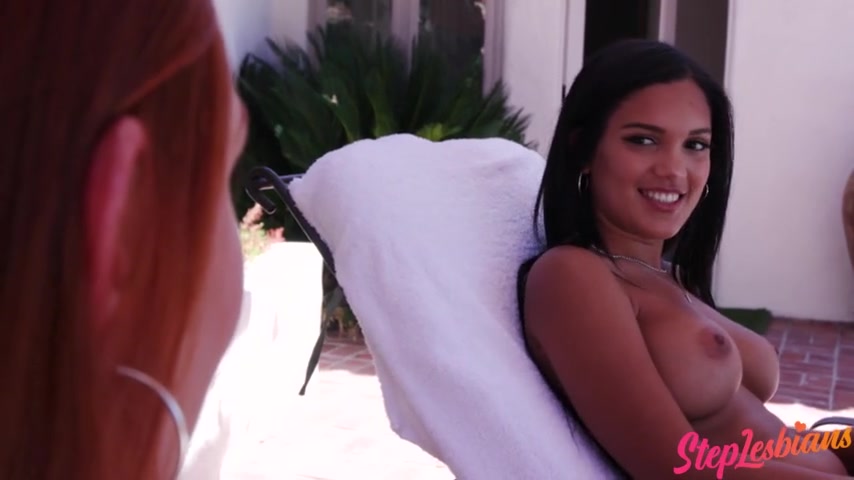 Redhead stepsister Lacy Lennon licking busty Latina babe Alina Belle