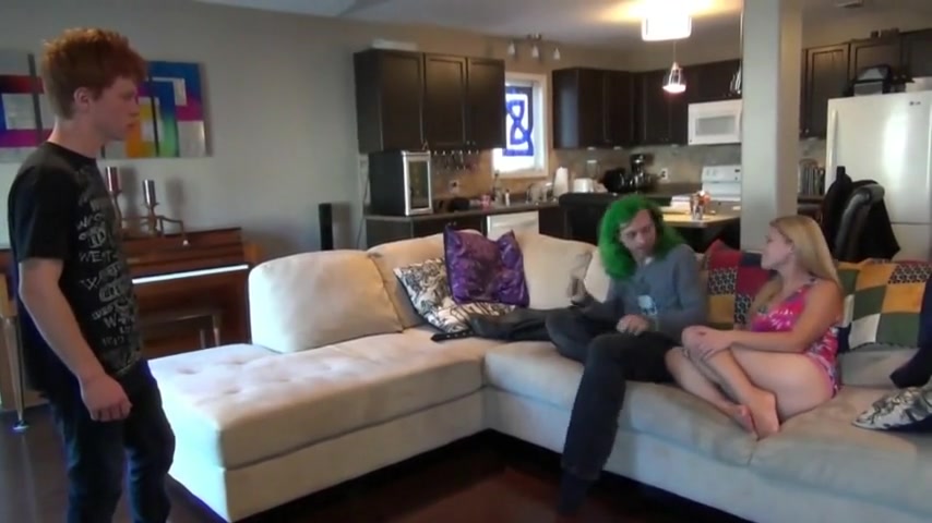 Amateur stepsisters Fifi Foxx and Shelby Paris sucking bro's cock in threesome