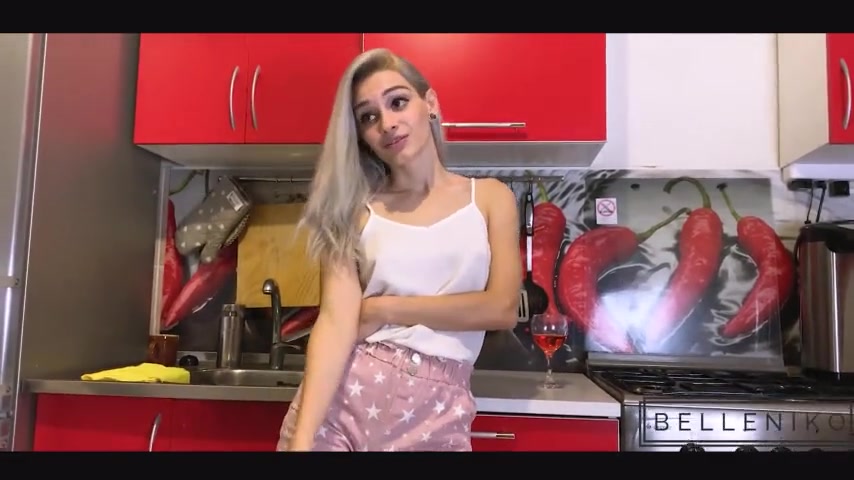 Young housewife strips in the kitchen and gets ass fucked