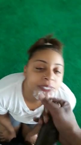 Amateur thot gets her mouth filled with black shaft and warm jizz