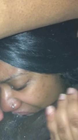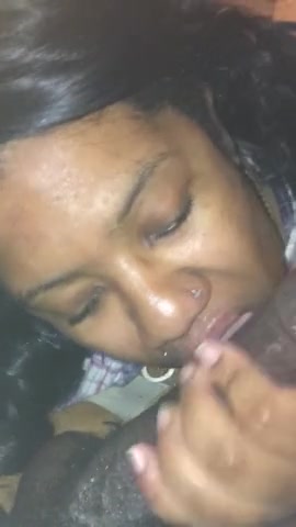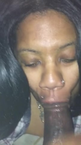 Amateur ebony hoe with big tits sucking big black dick in closeup POV