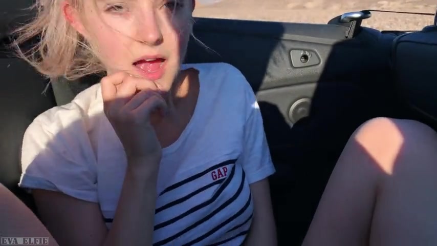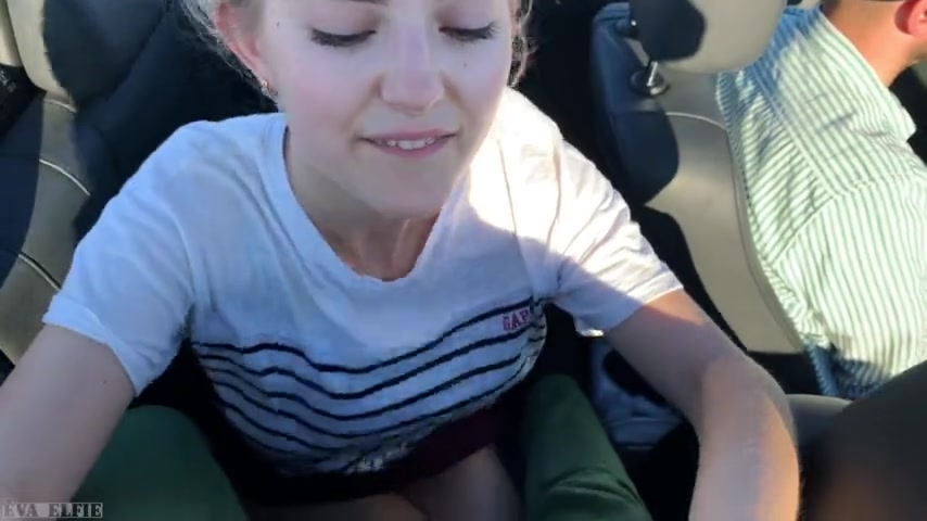 Petite amateur blonde teen sucking and riding dick in a car