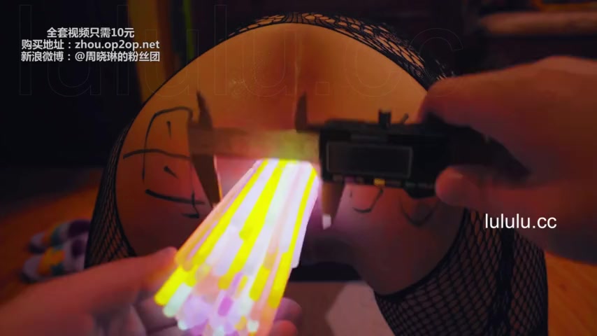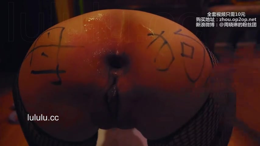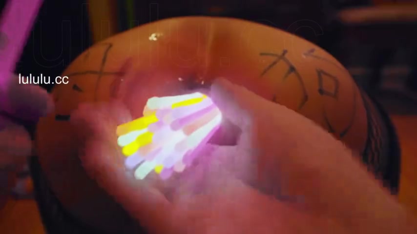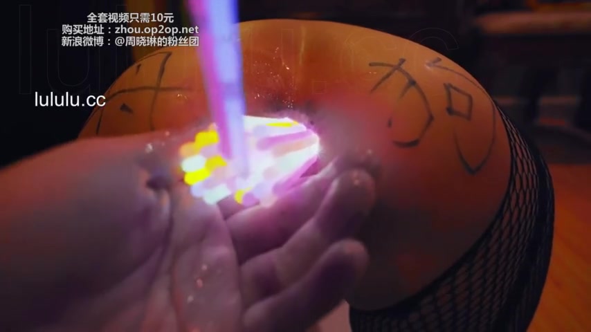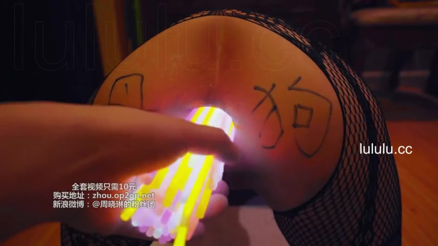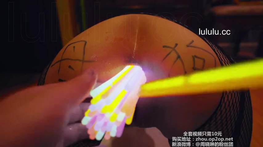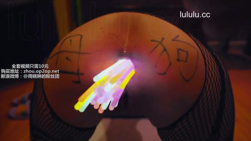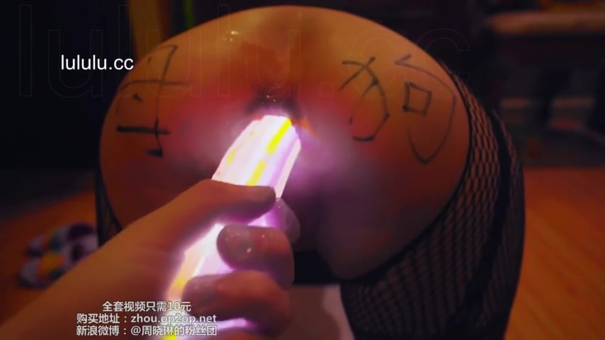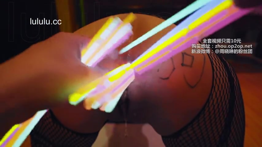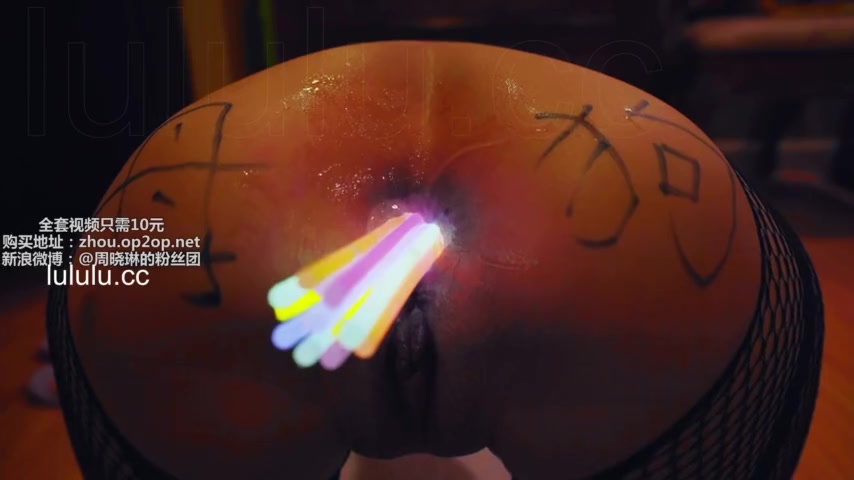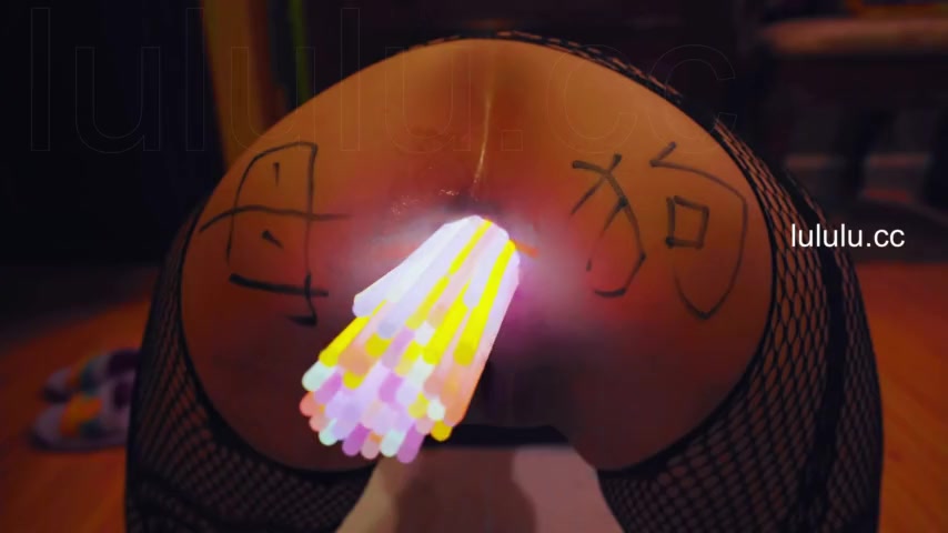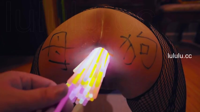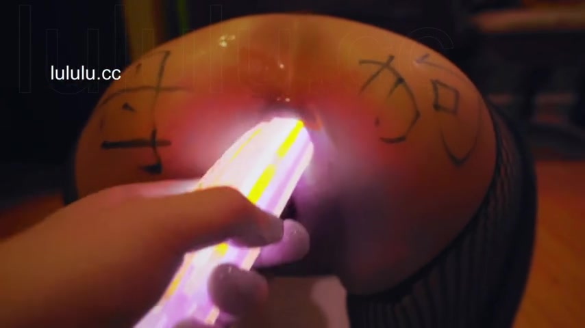 Chinese slut gets her asshole filled with glow sticks