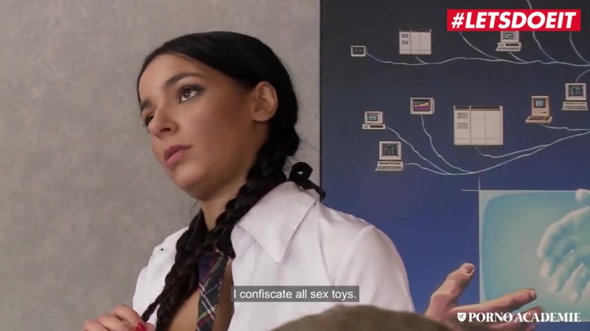 Skinny schoolgirl with big tits Michael Cheritto gets rammed by two friends