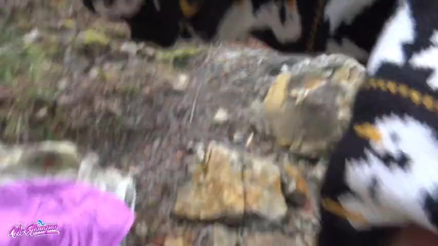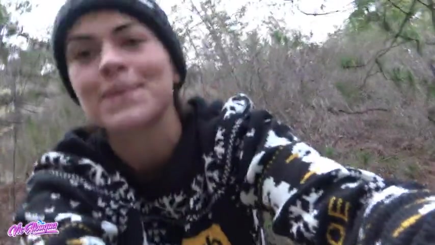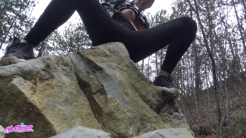 Amateur babe with wonderful bosoms strips and pleasures her clam outdoors