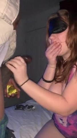 Blindfolded teen gives BJ and has wild missionary sex outdoors