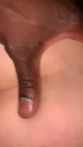 Lustful babe with big round booty stuffing her juicy vagina with a gigantic black ...