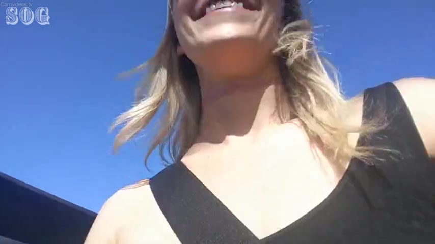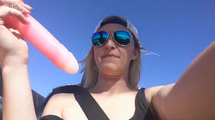 Horny blonde Ginger Banks rubs her bald pussy outdoors
