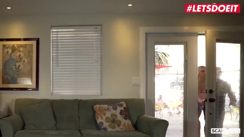 Naughty blonde Carolina Sweets seducing her stepdad to suck and ride his boner